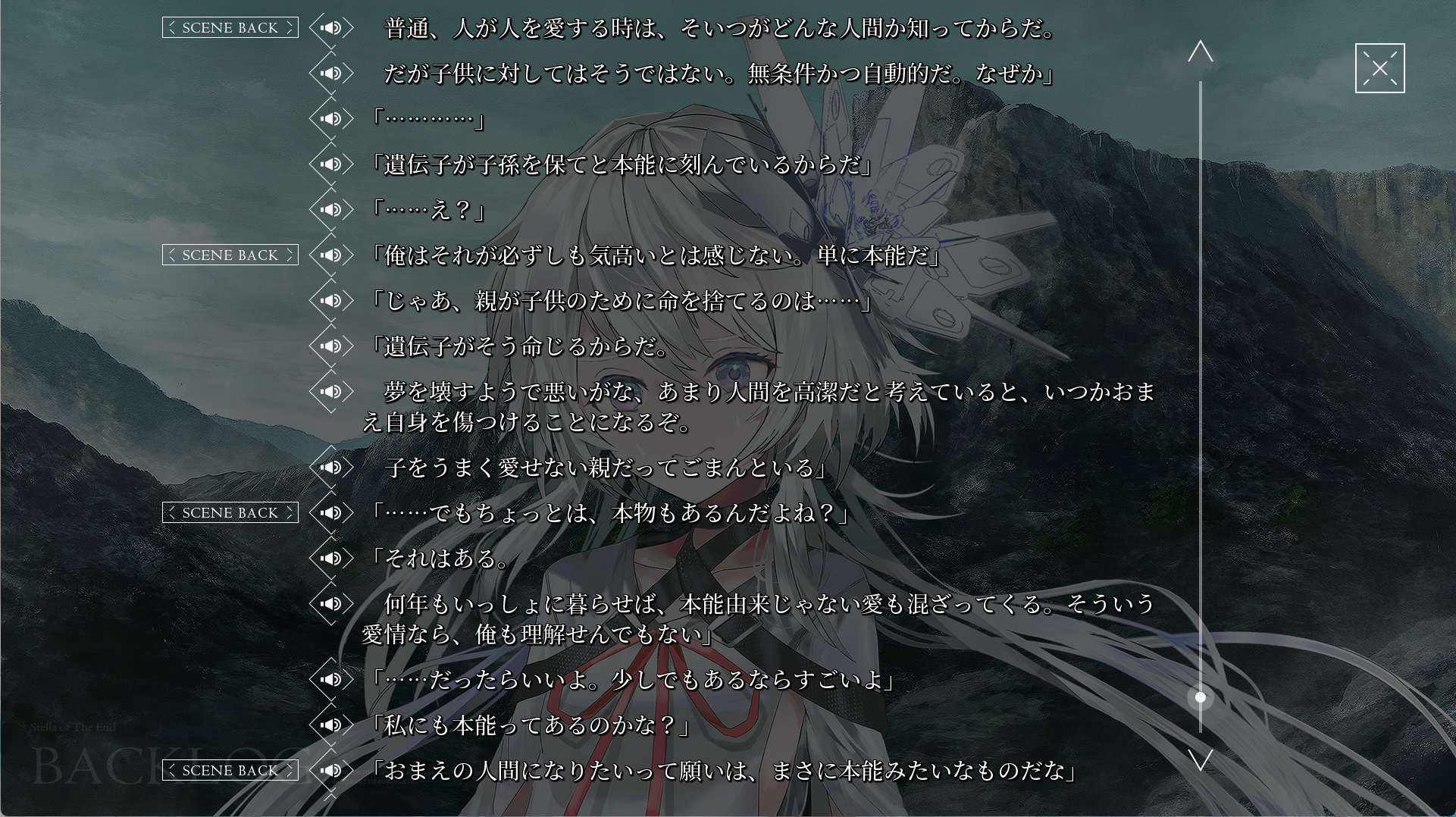 与此同时,。Philia在看着Jude为了她的愿望(……)奔走的过程中,开始逐渐意识到人类是为了利益而活动的,尤其在这样资源有限的条件下,作为毫无关系的陌生人、Jude毫无理由为她的愿望冒险,而她自说自话地向自己解释说:或许是人类的亲情那种关系吧。正像她之前和Jude路途上所看到的死去父女手机上的最后录音里播放的那样,她参考着网上的发言,想着,或许人类的父亲为子女而死是理所当然的吧,正因如此人类才非常伟大啊。(……如果这个句子是人说出来的我肯定超级生气……)我好像有一点能理解,就是那种,我也有那种因为接受了父母很多的很好的、没办法回报的对待所以想要试图找一个解释的想法,而Philia的想法应该也是类似的,下意识地为Jude这些宽容与温柔找一个原因,原因的名字是亲情,因为她觉得亲情是无需理由、不求回报的。