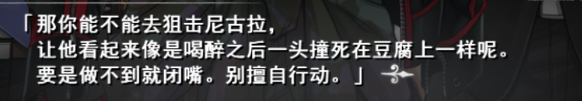 「一一那样的对象只会成为累赘罢了。我已经见过不少人,一旦他们的家人或者情人被抓去做人质,就只能乖乖听对方摆布了。」